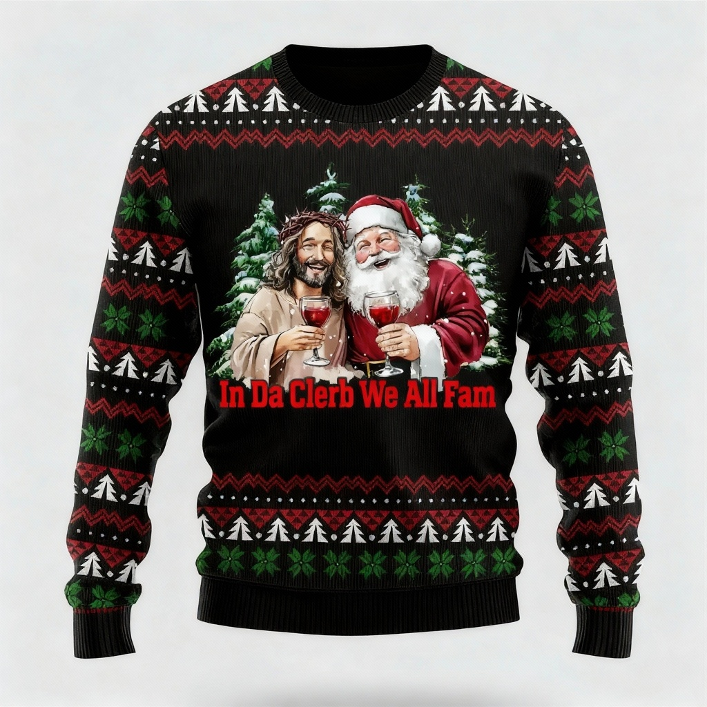 Jesus & Santa Claus Print - Classic Holiday Motif Ugly Sweater