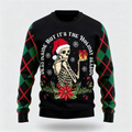 Funny Skull Print - Maximalist Christmas Print Ugly Sweater
