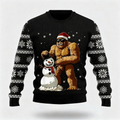 Funny Animal & Snowman Pattern Design - Black Holiday Icon Sweater