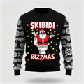 Playful Santa Claus Print - Black Holiday Icon Sweater